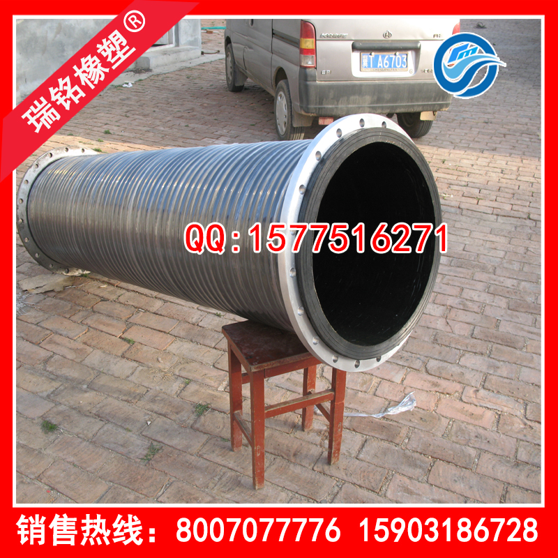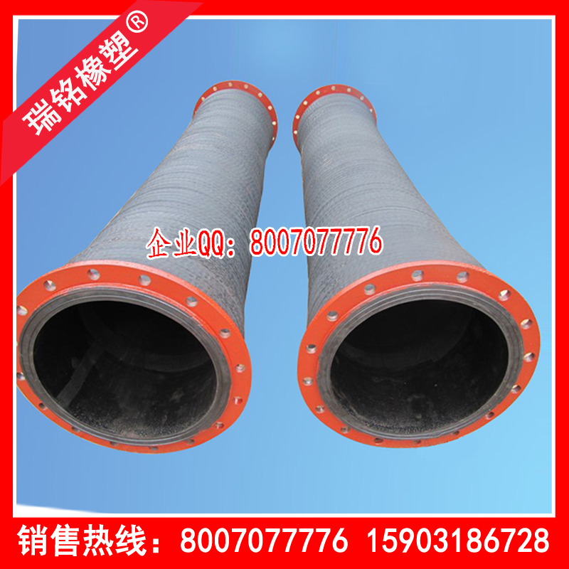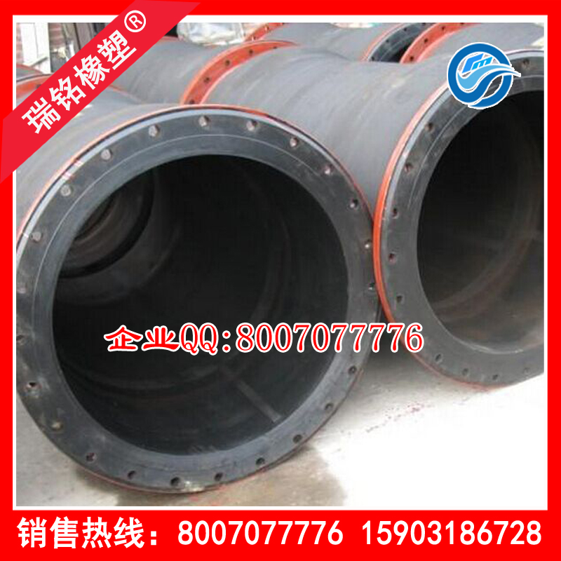 性能:鋼法蘭排泥膠管用于疏浚船配套輸送泥沙;厚壁18-70毫米;適宜工作溫度為零下20攝氏度到50攝氏度;便于靈活,安全,耐磨,耐曲撓。