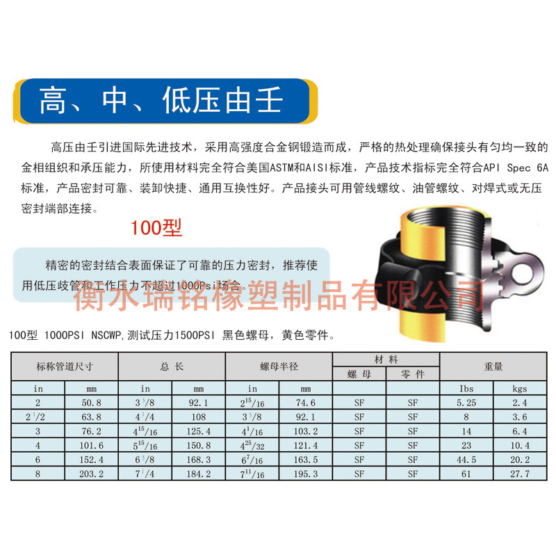 100 1,000/69 管匯和管線聯接經濟的低壓由壬