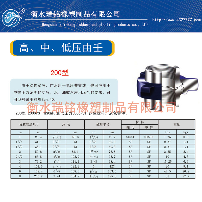 200 2,000/138 管匯和管線聯接經濟的一般用途由壬
