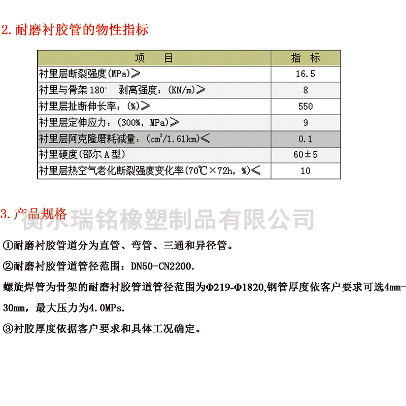 (2)耐磨襯膠管的規格(耐磨襯里膠厚度6mm/層)