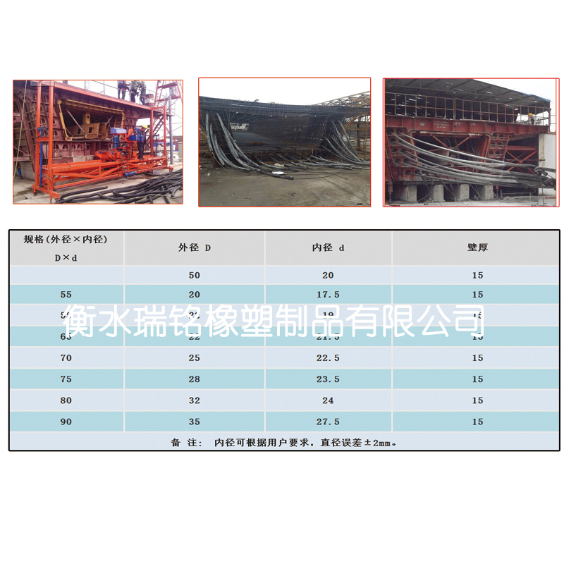 ★ 在不用時應避高溫、日光照射及接觸腐蝕性物品。橡膠抽拔管是一種用于混凝土構件小直徑成孔的新型芯模,它主要為橋梁上形成較小預應力孔而設計,也可用于其它建 筑行業混凝土的成孔。它是利用其高強度,高彈性和橡膠體積不可壓縮性能,在管體軸向受力時,會軸向伸長,徑向自然彎細。抽拔有力,施工方便,可反復使用,壽命長,表面光滑,平整度好,預留孔孔壁光滑,且抽拔時不受混凝土凝固時間的限制,經濟效益是顯而易見的。
